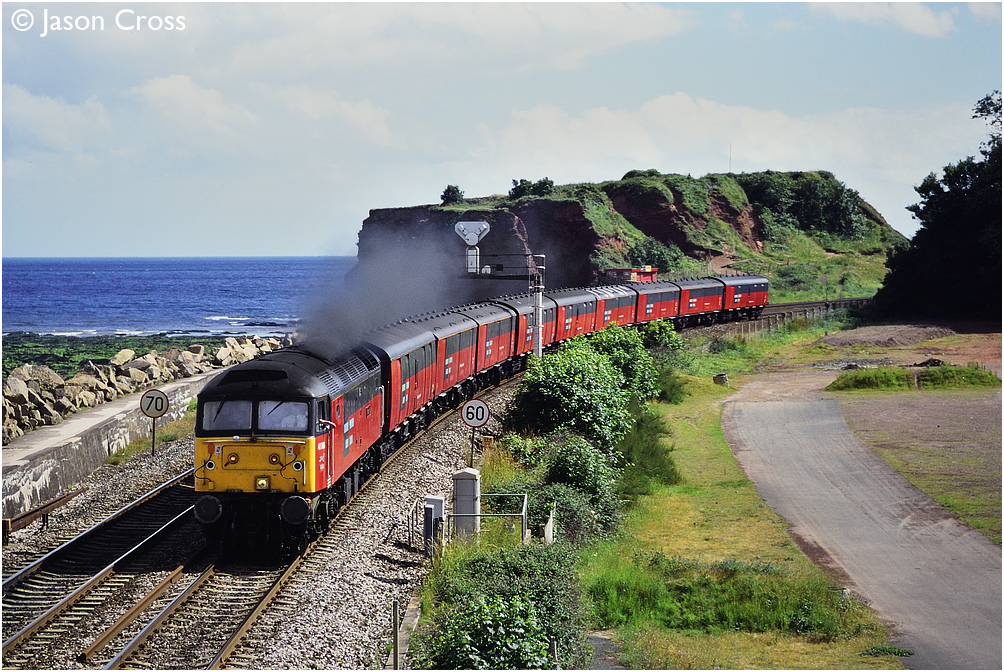 47766 puts the power down as it approaches Dawlish Warren with the 1E43 1509 Plymouth to Low Fell mail train. Date: 4 July 1996