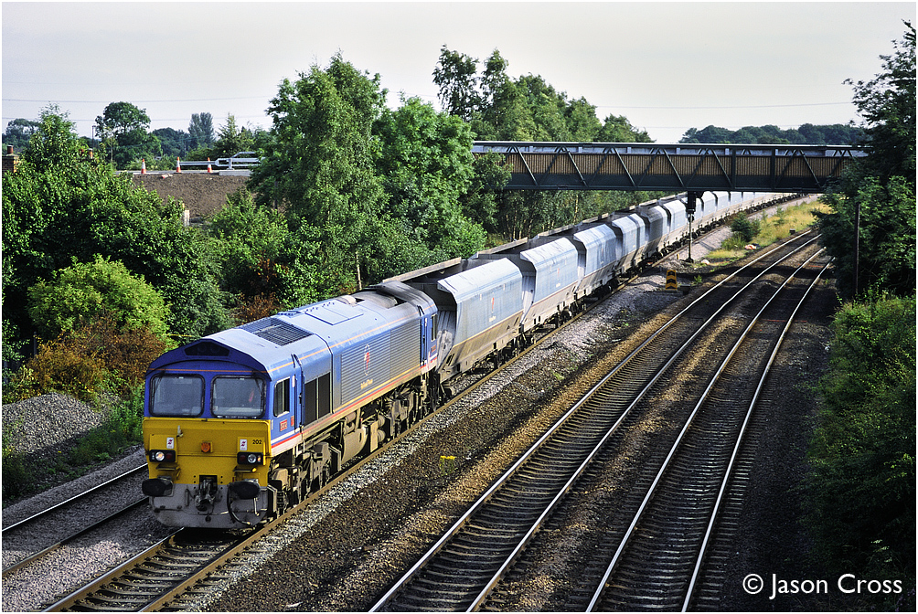 59202 approaches Milford Junction with a Drax to Gascoigne Wood train of empty coal hoppers. Date: 9 July 1998