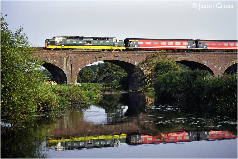 D9000 'Royal Scots Grey' crosses Leek Wootton Viaduct with 1S87 1210 Ramsgate to Glasgow Central. Date: 4 September 1999