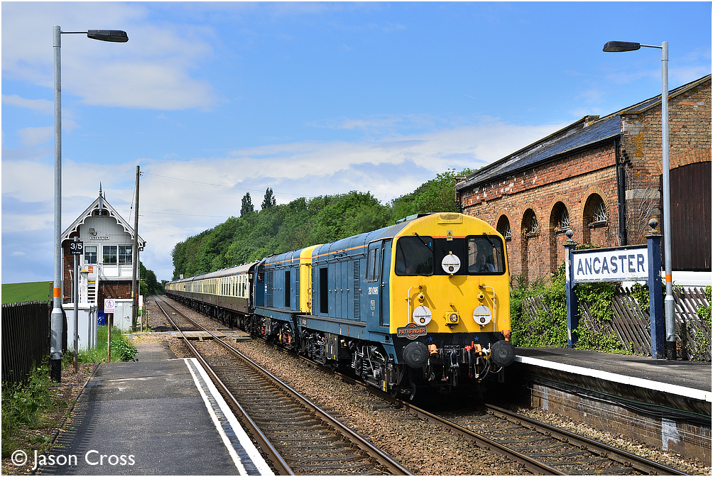 20096 and 20107 pass through Ancaster with a 1Z31 Chaddesden Sidings to Skegness railtour. Date: 25 May 2019 Manipulation Notes: None