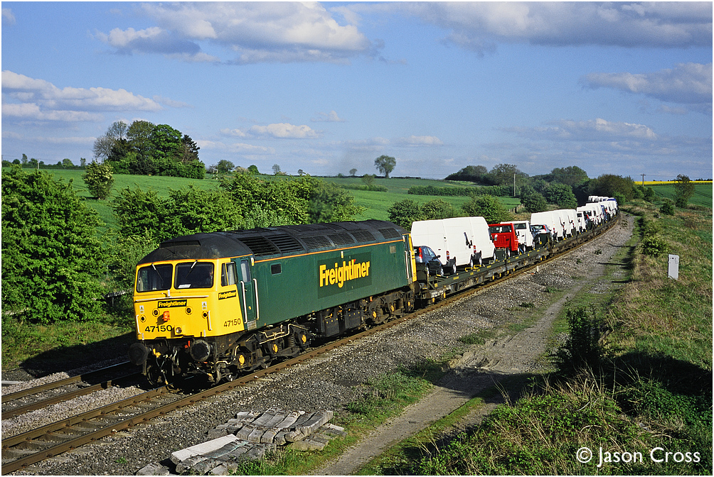47150 passes Kibworth Harcourt with the 4M26 1441 Dagenham to Crewe Gresty Bridge cartics. Date: 6 May 2003