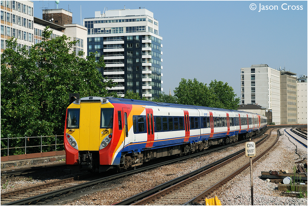 Juniper unit 8019 heads for London Waterloo at Vauxhall. Date: 11 August 2007 Manipulation Notes: None