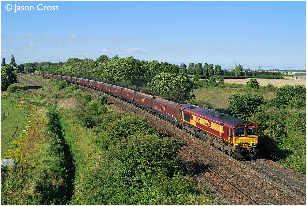 66058 passes Ulceby with a 6F95 1640 Immingham to Worksop coal train. Date: 25 August 2007 Manipulation Notes: None