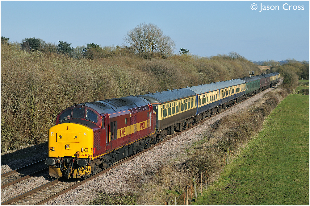 37401 passes Barrow on Trent with a Grantham to Wembley train of empty stock which had been used on a railtour the previous day. Date: 29 March 2009 Manipulation Notes: None