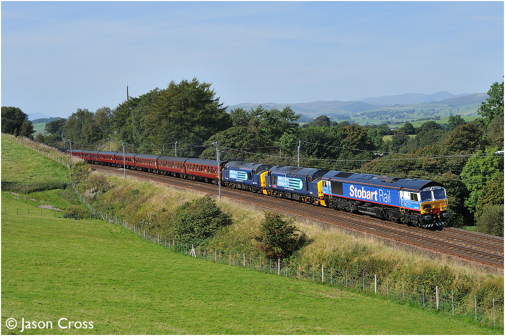66414 tops 37229 and 37510 at Hairdrigg with a 1Z19 0722 Birmingham International to Carlisle railtour. 37229 had failed. Date: 12 September 2009 Manipulation Notes: None