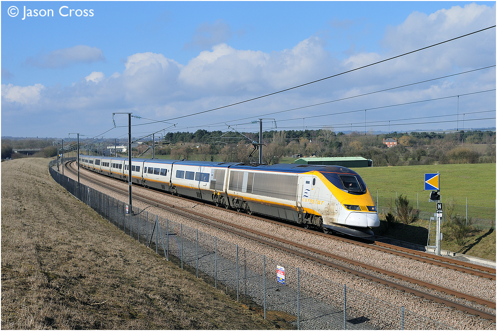 Eurostar 3007 parallels the M20 at Newlands Stud with train 9022, the 1132 London St Pancras International to Paris Gare du Nord. Date: 20 February 2010 Manipulation Notes: None