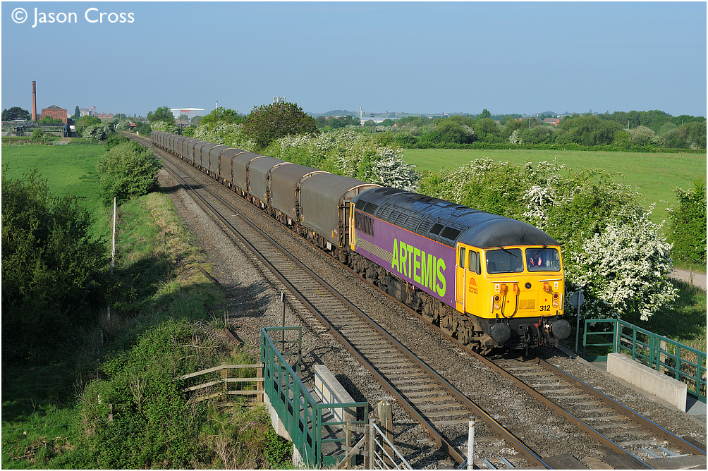 56312 works a 6Z56 0545 Washwood Heath to Boston Docks empty steel train at Mill Stream Lane, Clay Mills. Date: 21 May 2010 Manipulation Notes: None