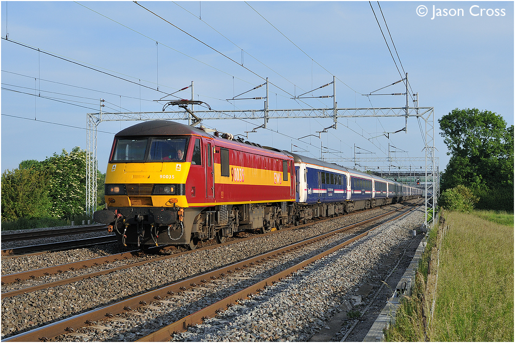 The Caledonian Sleeper running as 1M16 2046 Inverness to London Euston passes Cathiron behind 90035. Date: 23 June 2010 Manipulation Notes: None