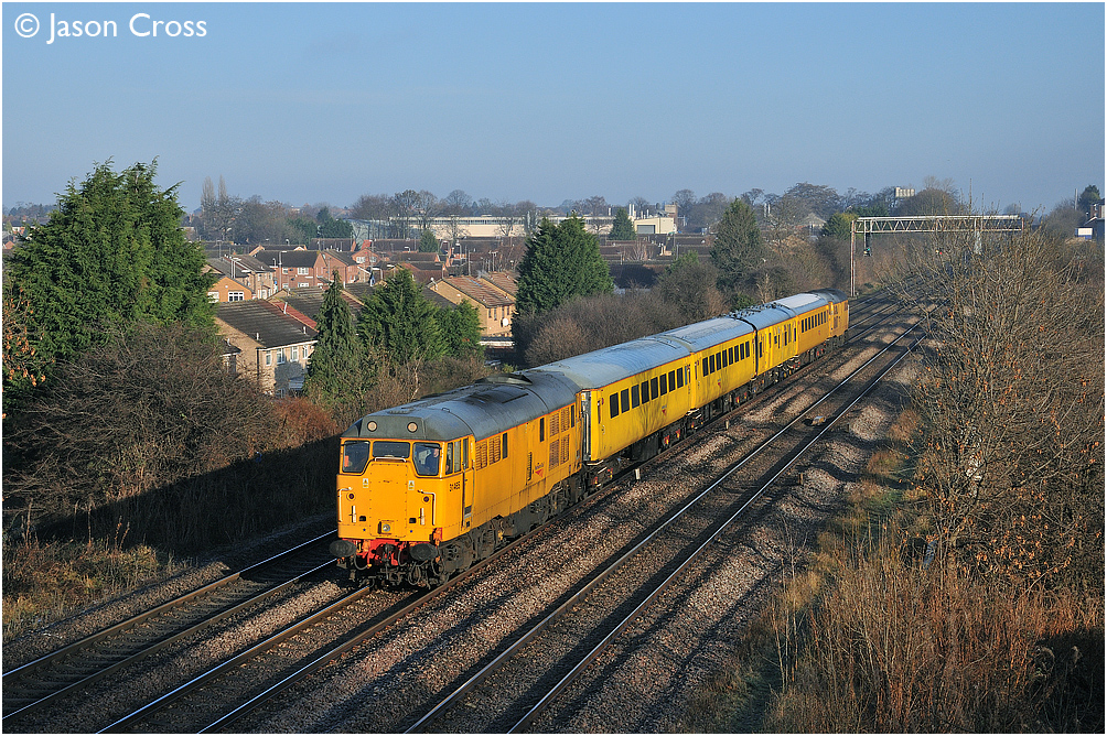 31465 passes Rushey Mead near Leicester with a 1Z14 0824 Derby RTC to Selhurst test train. Date: 5 December 2010 Manipulation Notes: None