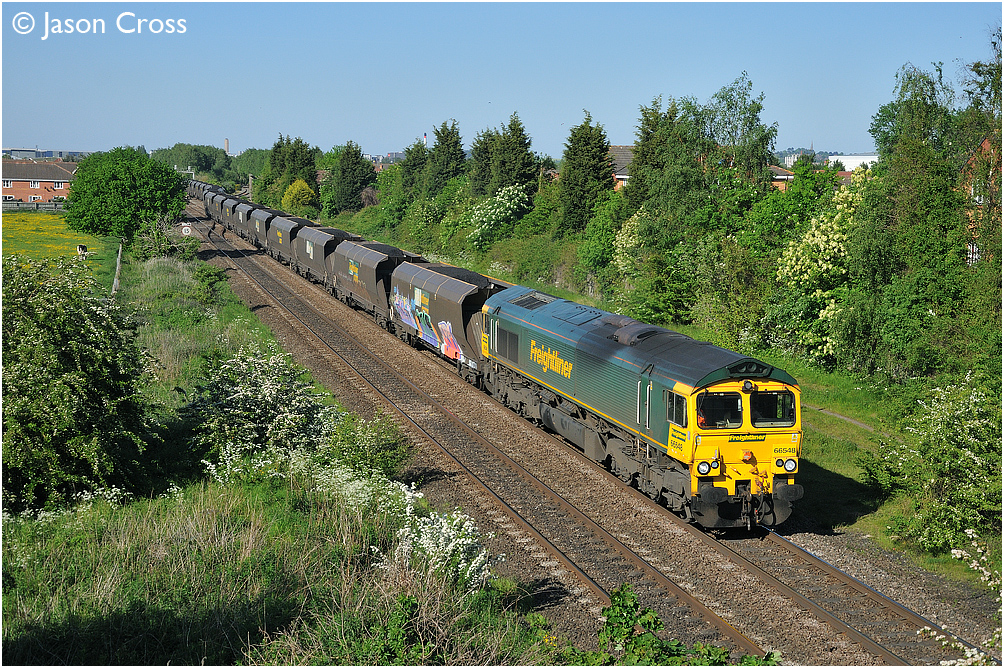 66548 leaves the loop at Branston Junction with a westbound coal train. Date: 25 May 2012 Manipulation Notes: None