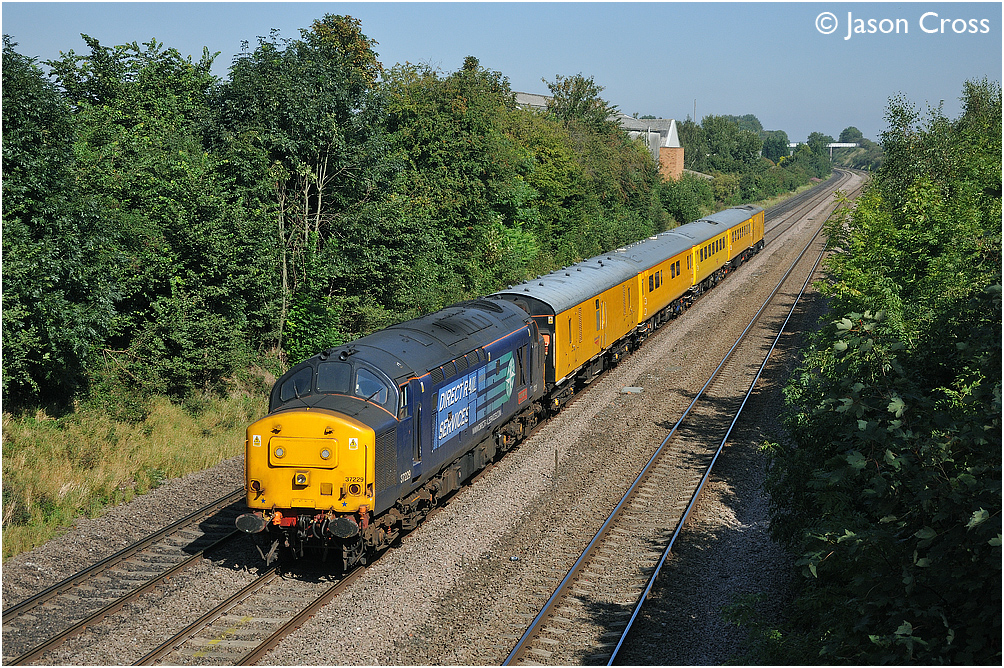 37229 races by Thurmaston with a 1Z32 1030 Derby RTC to Hither Green test train. Date: 8 September 2012 Manipulation Notes: None