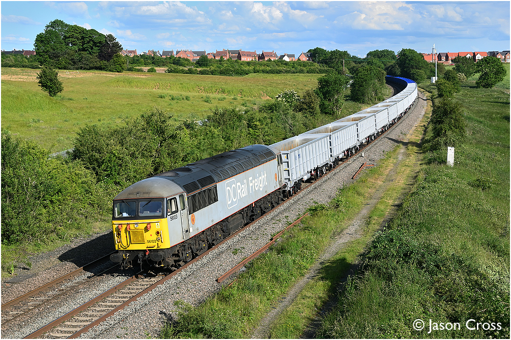 56103 passes Kibworth Harcourt at the head of a 4Z35 1440 Wembley Yard to Leicester Humberstone Road working. Date: 13 June 2020 Manipulation Notes: None Camera mounted on a tall pole and remotely fired