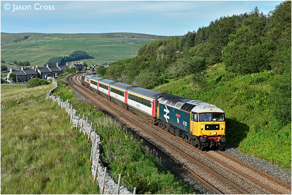 47593 passes Garsdale at the head of the 1Z46 1758 Appleby to Skipton tourist train. Date: 8 August 2020 Manipulation Notes: None Camera mounted on a tall pole and remotely fired