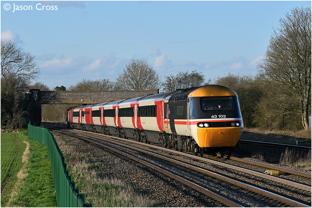 43102 hammers by Thurmaston at the head of 1B63 1645 Nottingham to St Pancras. Date: 25 March 2021 Manipulation Notes: None