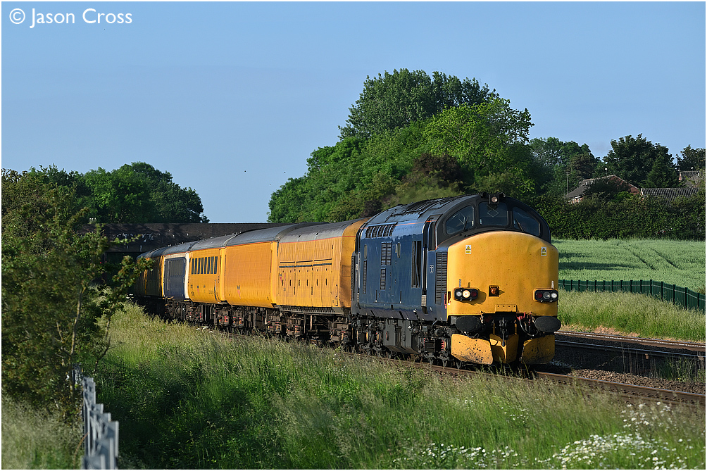37612 on the bi-directional slow line at Thurmaston with a 3Q68 2200 Nuneaton to Derby RTC test train. Date: 14 June 2021 Manipulation Notes: None