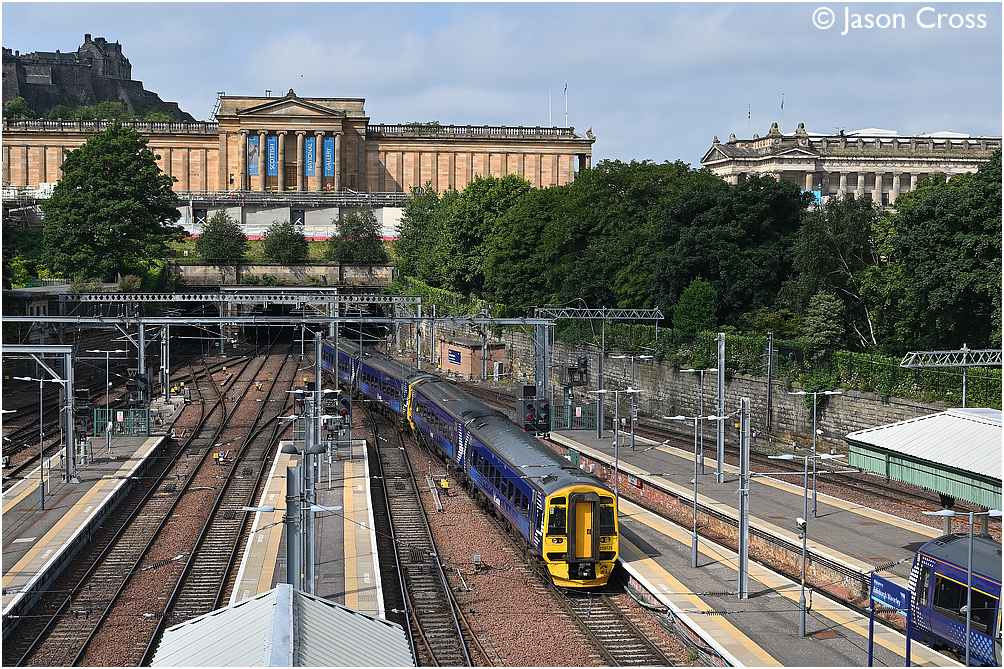 158725 and 158714 depart from Edinburgh Waverley with 1H11 1037 Edinburgh to Inverness. Date: 19 July 2021 Manipulation Notes: None