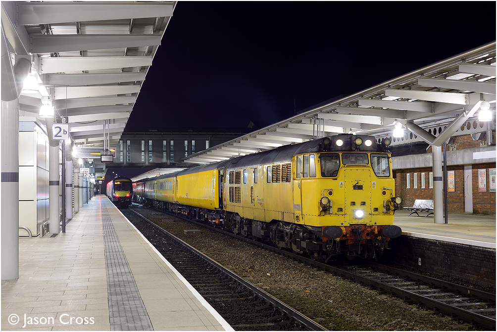 31233 pauses in Derby station with a 2242 Derby R.T.C. to Blackpool North test train. Date: 25 November 2013 Manipulation Notes: None