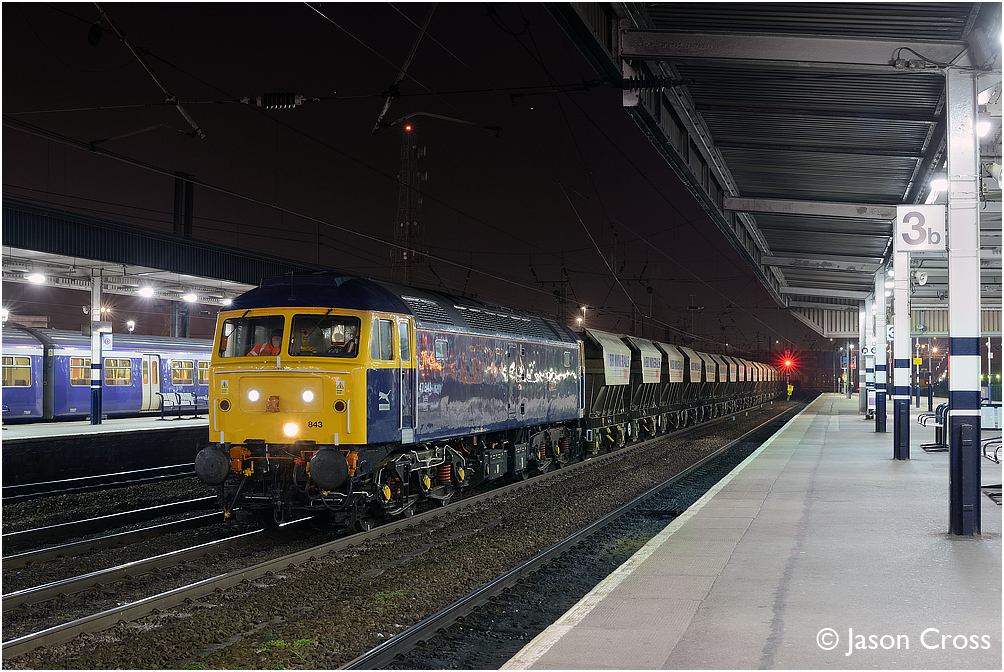 47843 'Vulcan' pauses in the centre road at Doncaster with the 6D33 0440 Goole Glassworks to Doncaster Decoy Yard sand empties. Date: 1 March 2014 Manipulation Notes: None