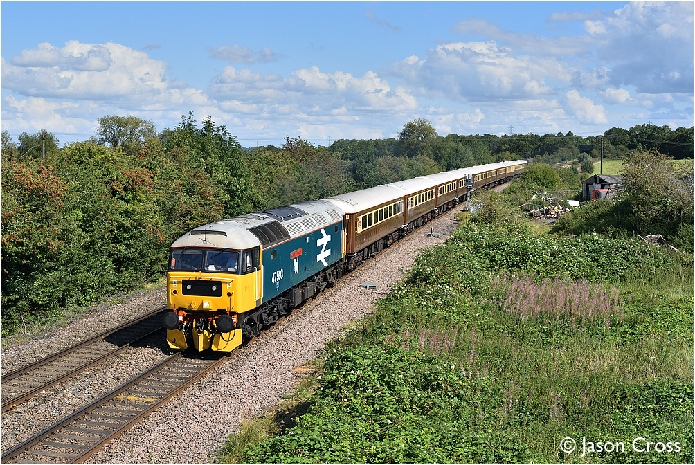 47593 passes Elmesthorpe with a 5Z88 Humberstone Road to Crewe ECS. Date: 1 September 2019 Manipulation Notes: None Camera mounted on a tall pole and remotely fired