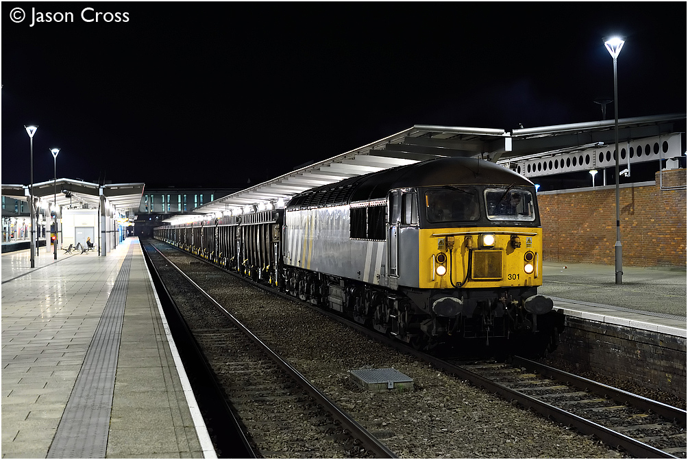 56301 passes through Derby with the 6Z35 1818 Cardiff Tidal Yard to Stockton Thomson scrap empties. Date: 8 April 2015 Manipulation Notes: None