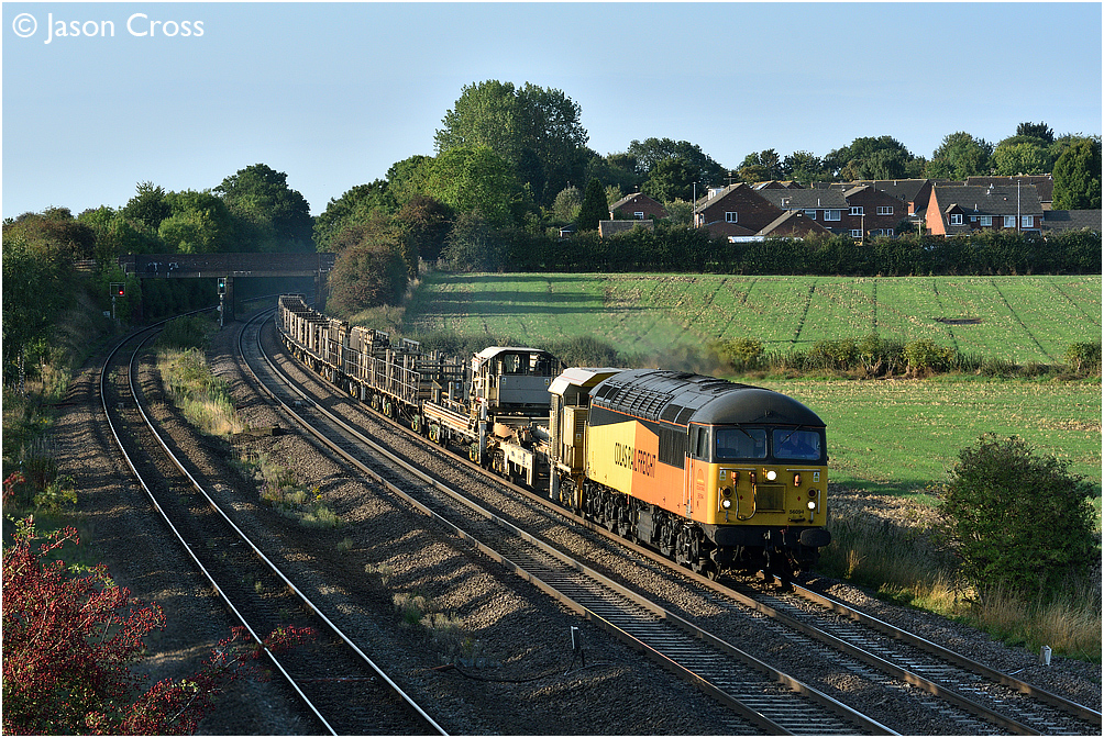 56094 passes Thurmaston with a 6C77 Syston South Junction to Doncaster Belmont Yard engineering train. Date: 2 September 2018 Manipulation Notes: None