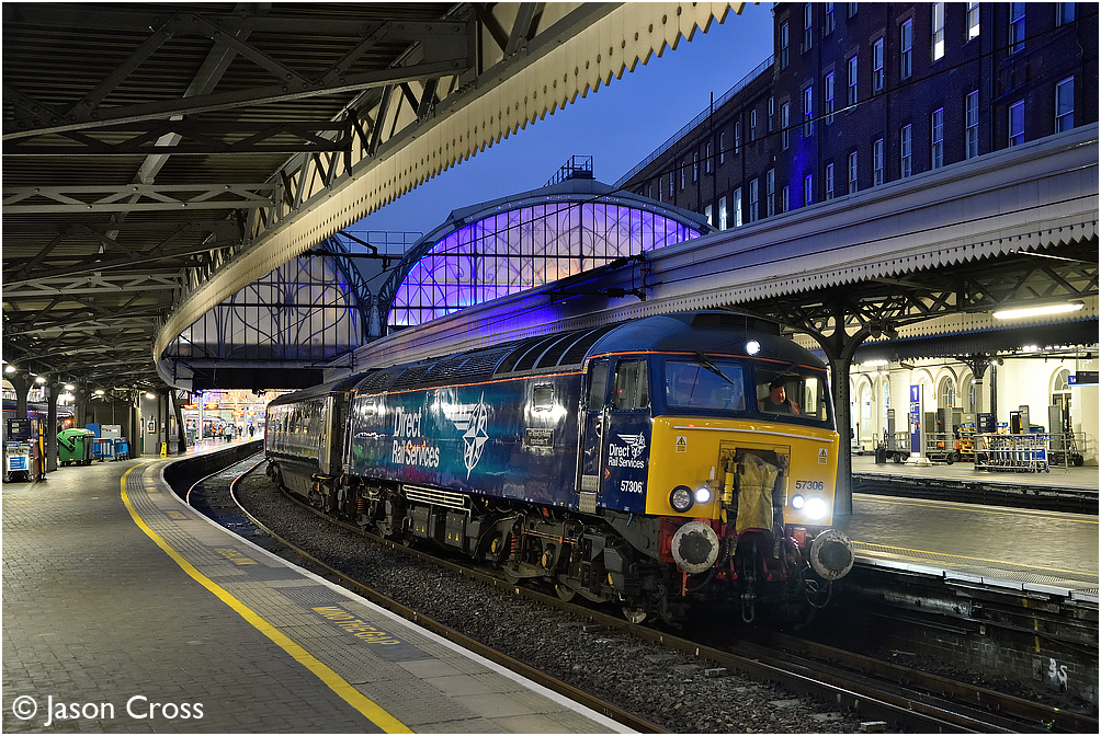 57306 waits to depart from London Paddington with the 'Night Riviera' sleeping car train stock as 5A40 0742 London Paddington to Old Oak Common Depot. Date: 29 October 2016 Manipulation Notes: None