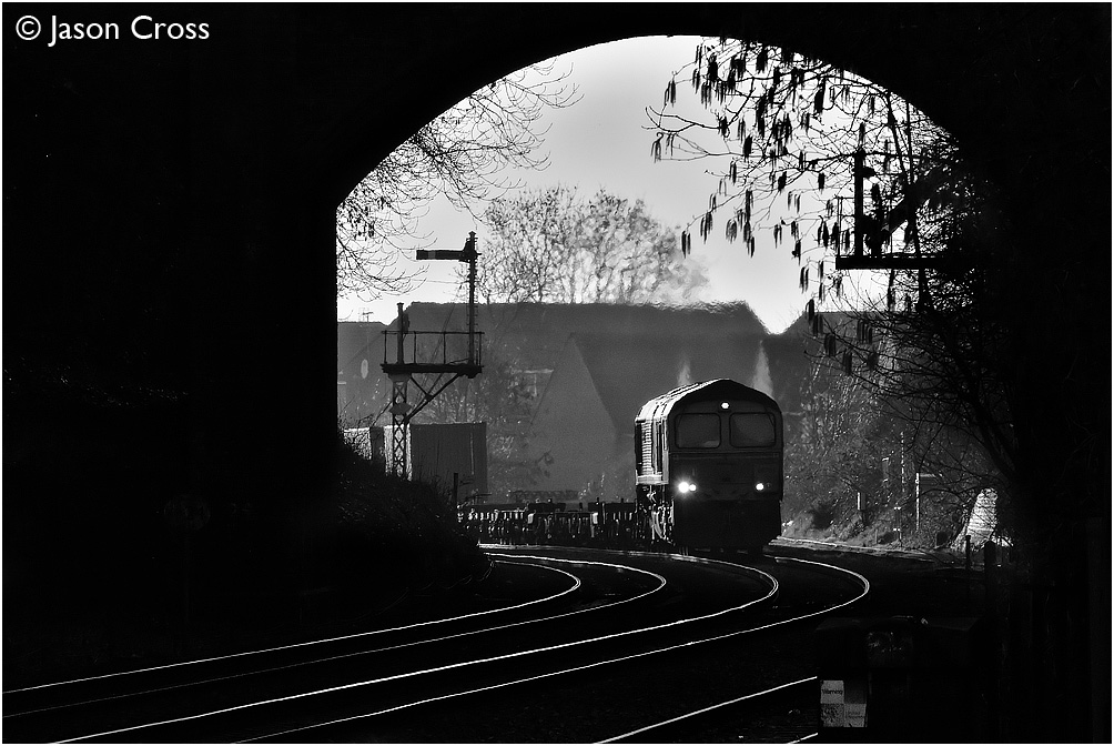 66761 approaches Melton Mowbray with the 4L07 Birch Coppice to Felixstowe container train. Date: 26 February 2019 Manipulation Notes: None