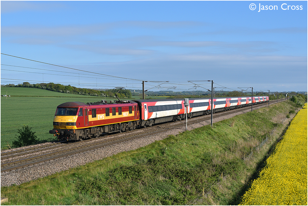 90039 passes Frinkley Lane, Marston with the 1B89 1754 Newark North Gate to London Kings Cross service. Date: 5 May 2017 Manipulation Notes: None Camera mounted on a tall pole and remotely fired