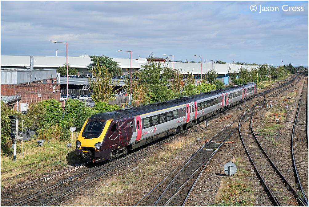 222008 approaches Leicester with a 1T31 Birmingham New Street to Leicester (via Castle Donnington) working. The line between Nuneaton and Birmingham was closed due to engineering works. Date: 16 September 2018 Manipulation Notes: None