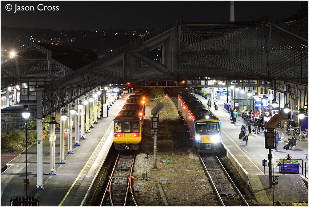 in Huddersfield with the 2E88 1759 from Manchester Piccadilly are passed by an
