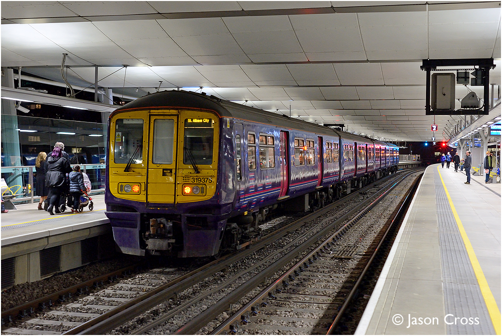 319375 at Blackfriars with the 2O93 1644 St Albans to Sutton. Date: 9 November 2013 Manipulation Notes: None