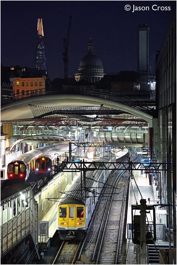 319445 arrives at Farringdon with the 2O93 1644 St Albans to London Blackfriars. Date: 31 October 2015 Manipulation Notes: None