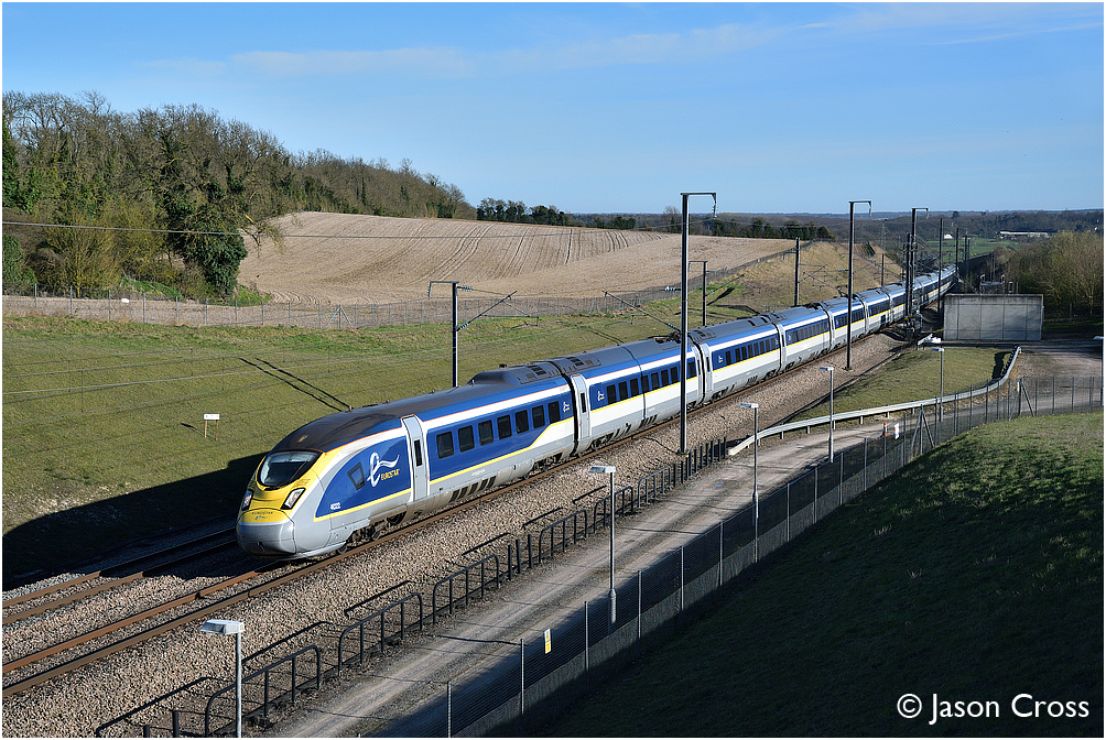 E320 set 4022 approaches North Downs Tunnel with train 9039, the 1513 Paris Nord to St Pancras International. Date: 25 March 2017 Manipulation Notes: None