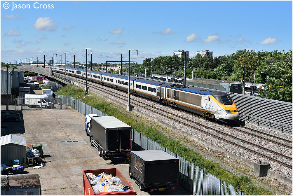 3209 leads train 9032, the 1422 London St Pancras International to Paris Nord through Rainham. Date: 27 May 2017 Manipulation Notes: None