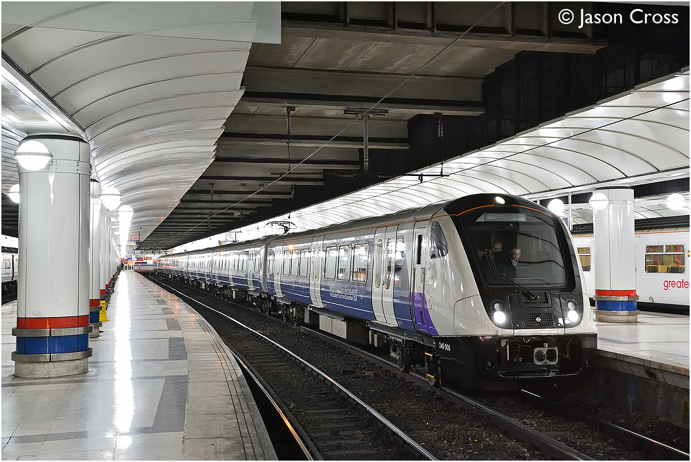 345005 waits to depart from Liverpool Street with the 2W56 1020 to Shenfield. Date: 20 February 2018 Manipulation Notes: None