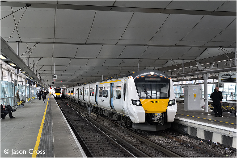 700002 departs from Blackfriars with the 2V48 1238 Sutton to St Albans service. Date: 20 February 2018 Manipulation Notes: None