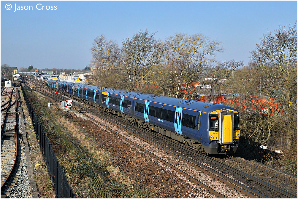 375626 and 375613 depart from Paddock Wood with the 2R22 0911 London Charing Cross to Ramsgate. Date: 24 February 2018 Manipulation Notes: None