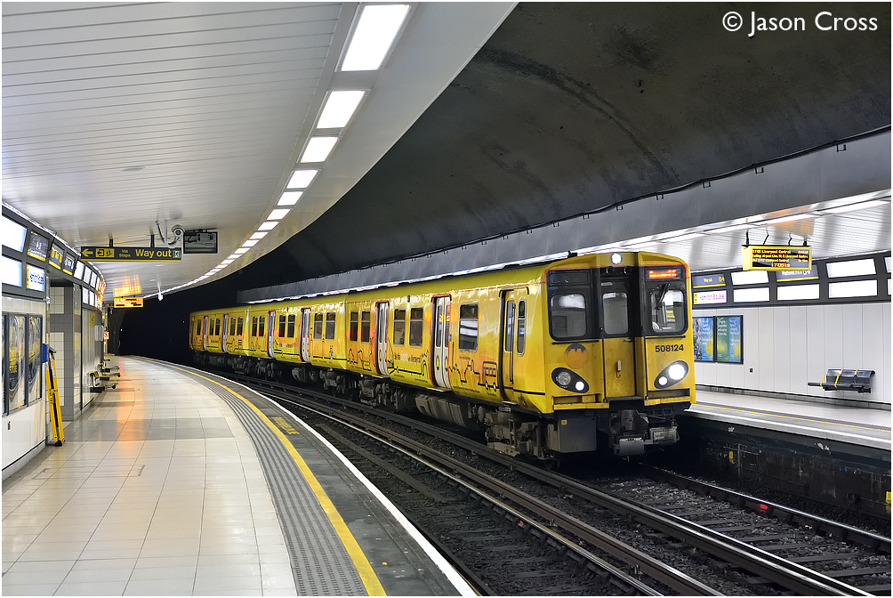 508124 arrives at Birkenhead Hamilton Square with 2C45 1625 Chester to Chester via Liverpool Central. Date: 10 June 2018 Manipulation Notes: None