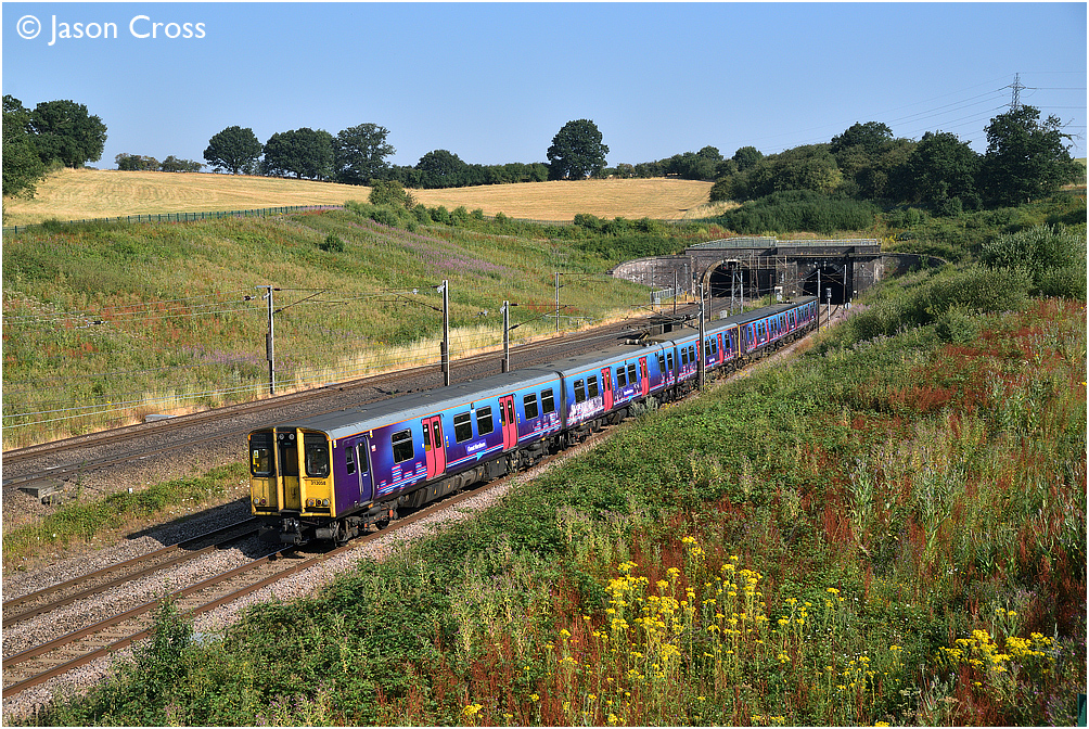 313058 leads the 2K38 0825 Welwyn Garden City to Moorgate service out of Potters Bar Tunnel. Date: 14 July 2018 Manipulation Notes: None Camera mounted on a tall pole and remotely fired