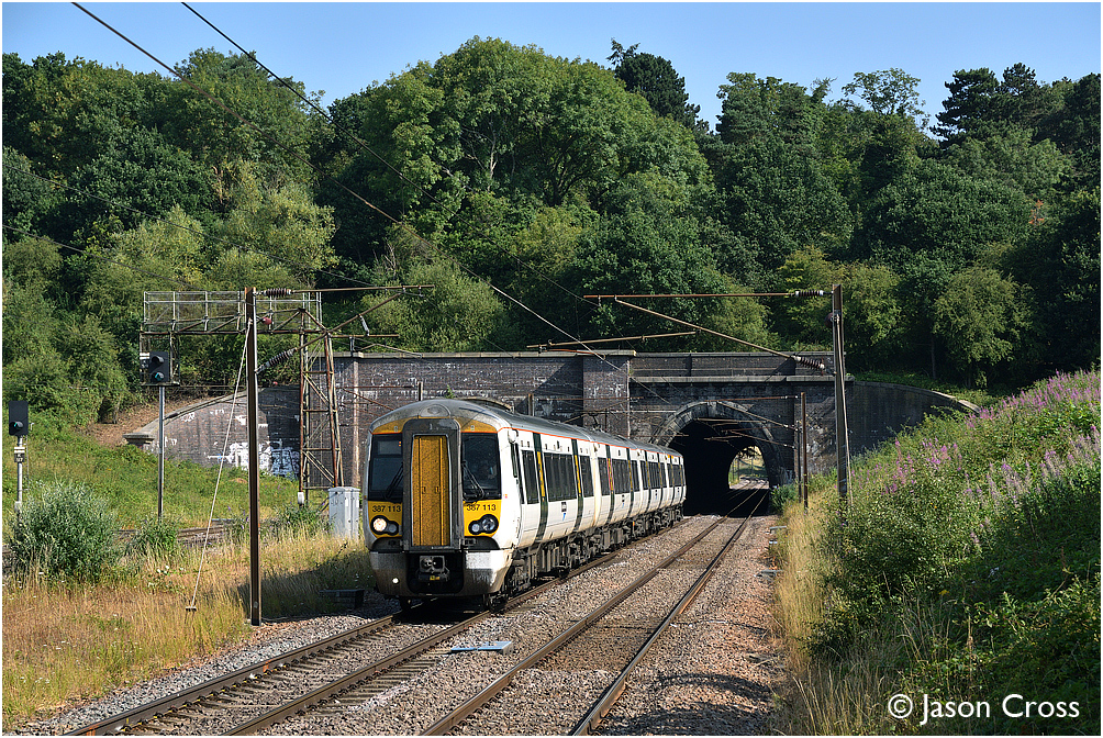 387113 approaches Hadley Wood with the 1P23 0824 Peterborough to London Kings Cross. Date: 14 July 2018 Manipulation Notes: None