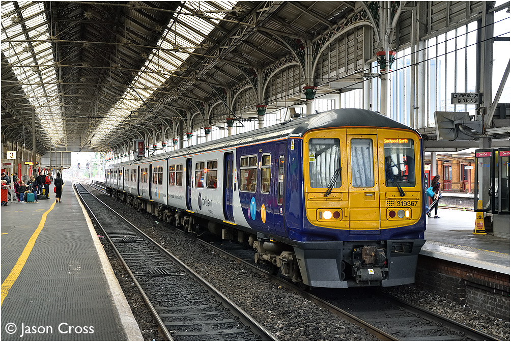 319367 waits to depart from Preston with the 2P93 1805 to Blackpool North. Date: 27 August 2018 Manipulation Notes: None