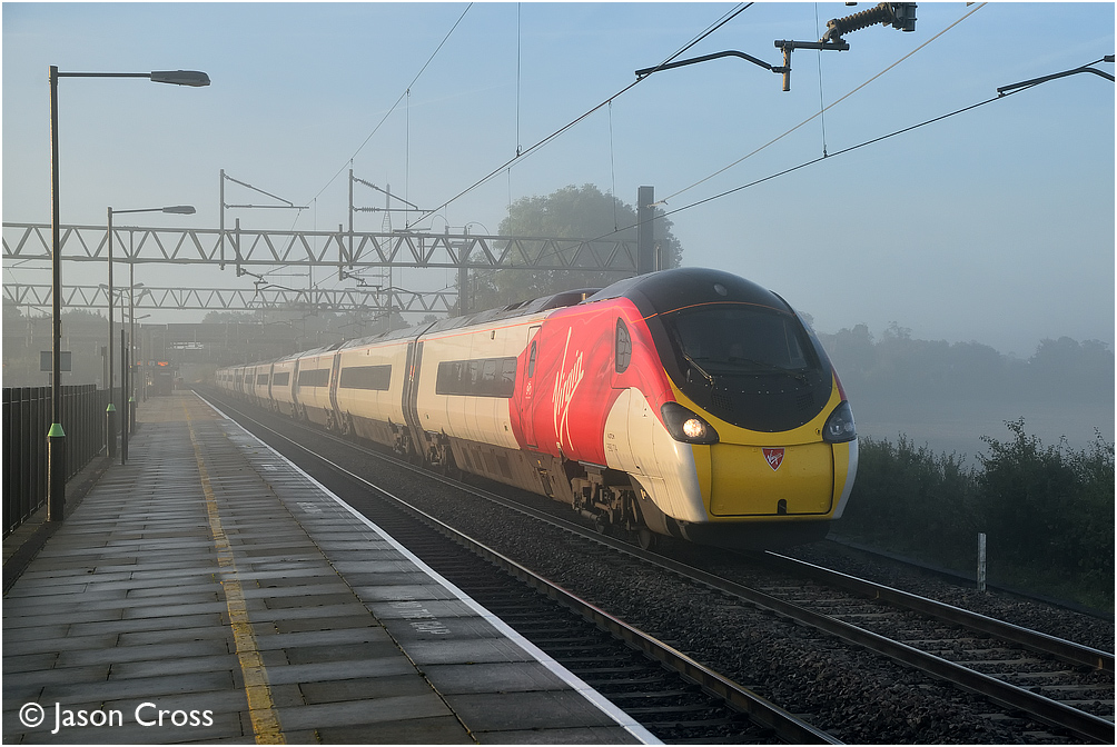 390114 heads north at Cheddington with the 9G04 0703 London Euston to Birmingham New Street. Date: 15 September 2018 Manipulation Notes: None