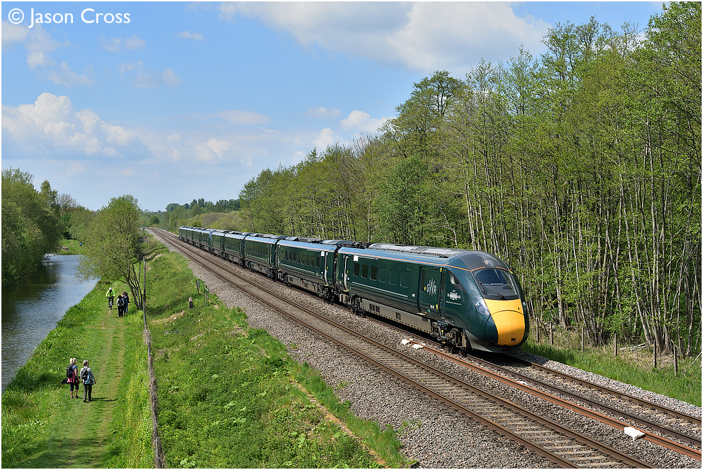 802011 and 802014 approach Kintbury with the 1A83 1000 Penzance to London Paddington. Date: 11 May 2019 Manipulation Notes: None Camera mounted on a tall pole and remotely fired