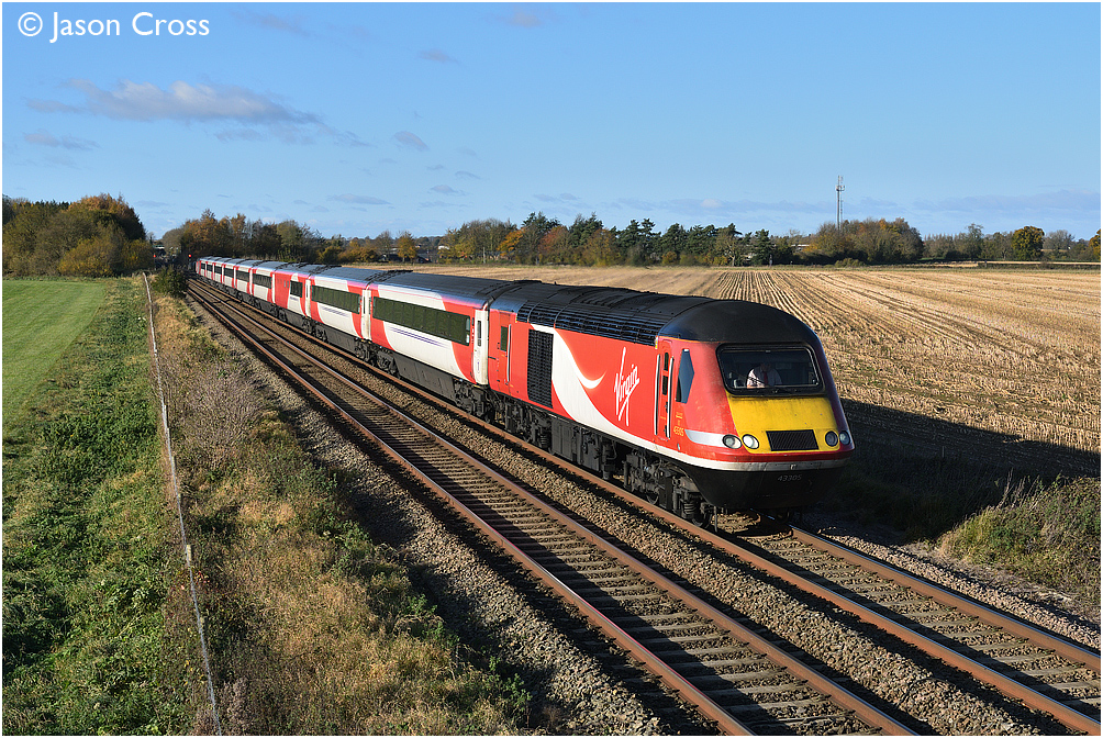 43305 passes Metheringham with the 1E09 0930 Edinburgh to London Kings Cross. Date: 12 November 2017 Manipulation Notes: None Camera mounted on a tall pole and remotely fired