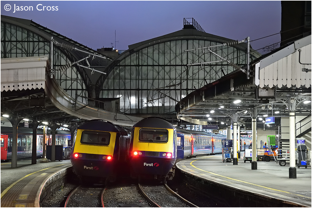 43159 and 43160 at London Paddington having arrived with 5G60 1743 ECS from Old Oak Common and 1P61 from 1433 Great Malvern. Date: 23 December 2017 Manipulation Notes: None