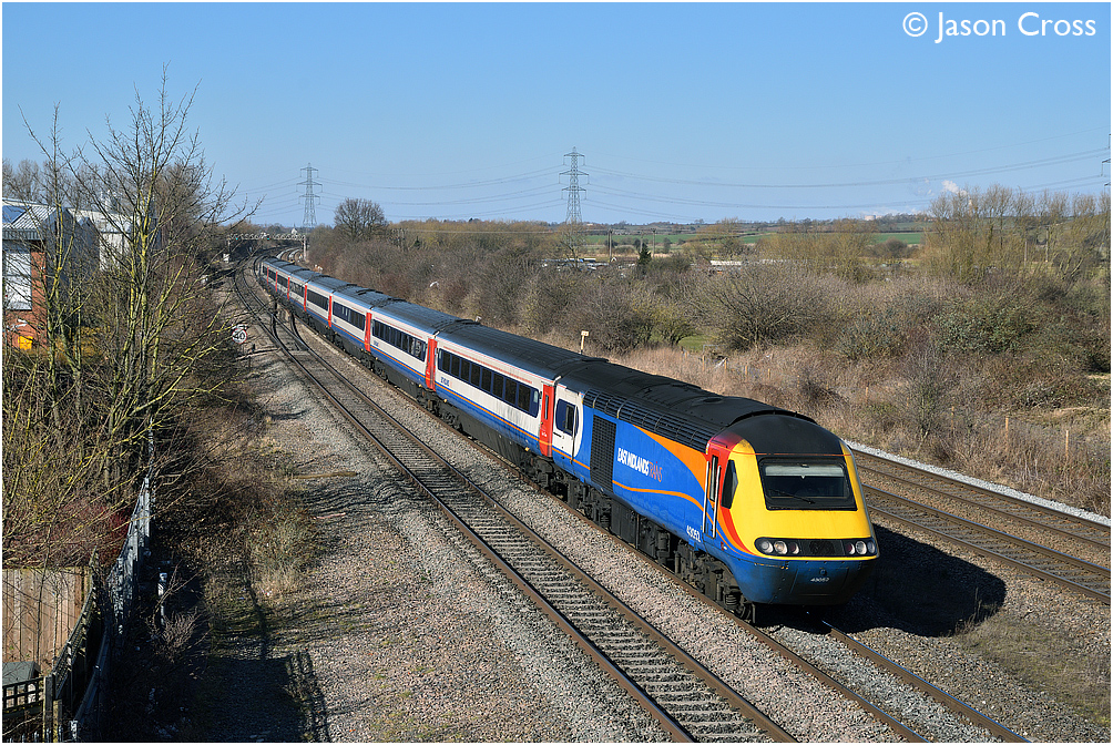43052 at Loughborough North Junction with a 1C43 1050 Leeds to Leicester service. Date: 25 February 2018 Manipulation Notes: None