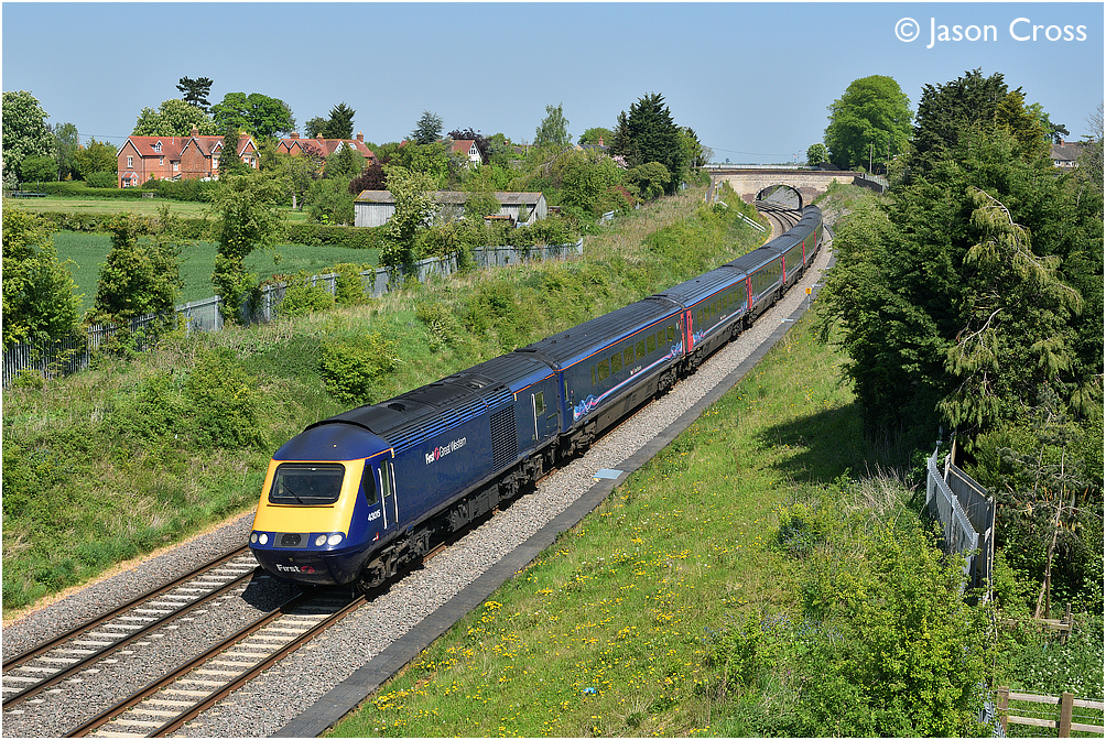 43015 passes through Islip at the head of the 1Z55 1243 London Marylebone to Swansea. Date: 6 May 2018 Manipulation Notes: None Camera mounted on a tall pole and remotely fired