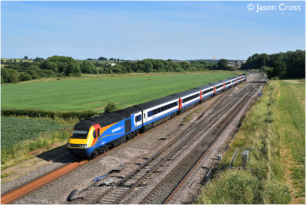 43073 heads north on the slow line at Harrowden Junction with the 1F49 1548 St Pancras International to Sheffield. Date: 24 June 2018 Manipulation Notes: None Camera mounted on a tall pole and remotely fired