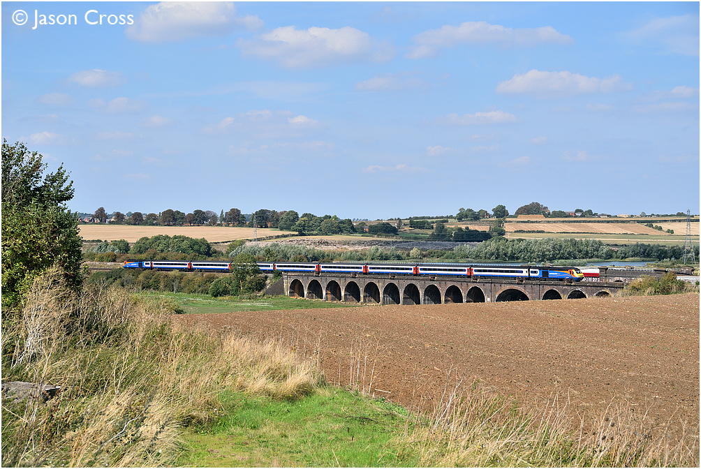 43052 crosses Irchester Viaduct on the rear of the 1D32 1234 St Pancras International to Nottingham. Date: 1 September 2018 Manipulation Notes: None