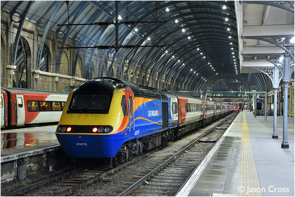 43075 stands at King's Cross prior to working the 1S09 0759 to Edinburgh Waverley. Date: 1 December 2018 Manipulation Notes: None